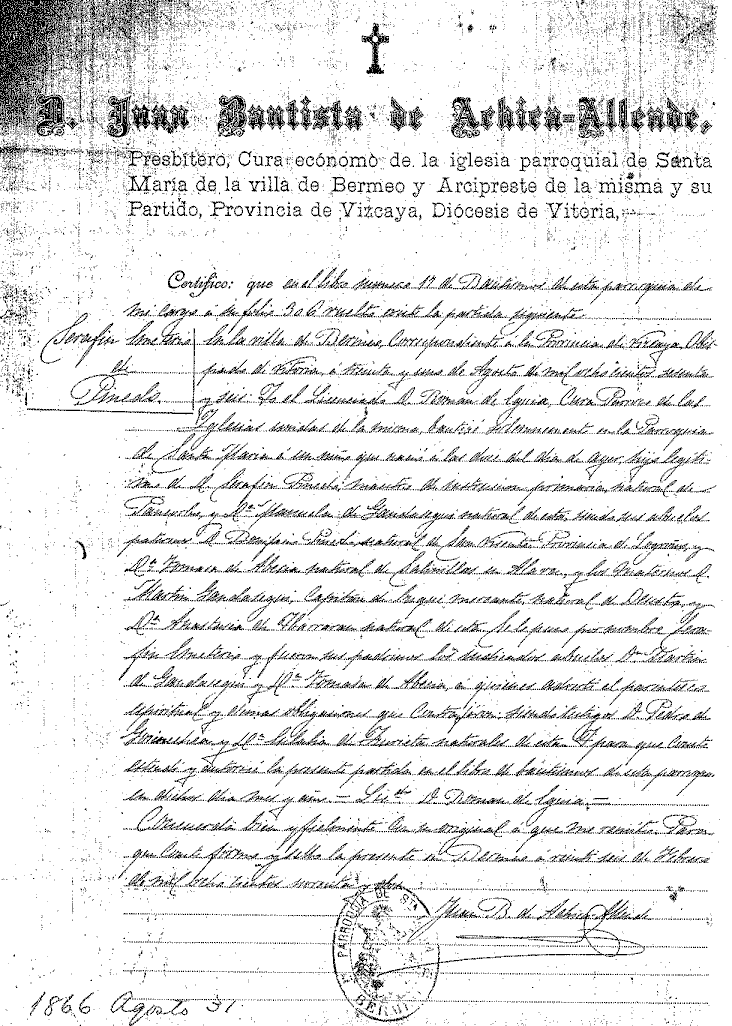 de Vitoria, a treinta y uno de Agosto de mil ochocientos sesenta y seis: